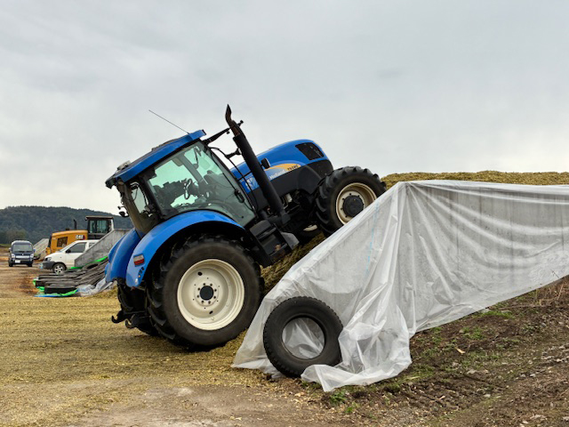 時期は昨年9月末。収穫したコーン🌽をバンカーサイロに搬入した後、